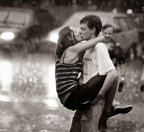 Ảnh đẹp đôi tình nhân hôn nhau trong mưa.